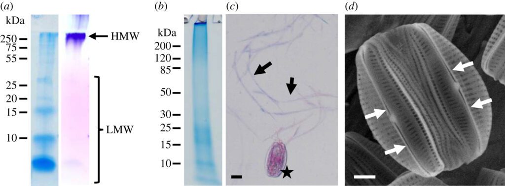 Kieselalgen, einzellige Mikroalgen schaffen es, sich unter Wasser an jegliche denkbare Oberfläche anzuheften. Die Anheftung wird durch sekretierte Biopolymere vermittelt, die biochemisch analysiert wurden und mit verschiedenen Methoden charakterisiert wurden.